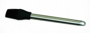 O pincel de silicone tem cabo ergonômico em aço escovado e gancho para pendurar, dando mais requinte e elegância à sua cozinha.